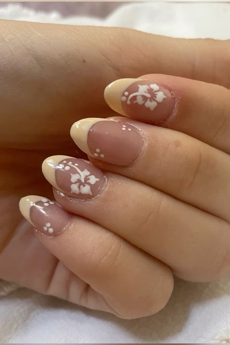 Create a stunning and summery nail design with this easy-to-follow tutorial for yellow French tips adorned with white hibiscus flowers.